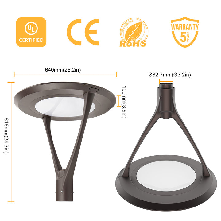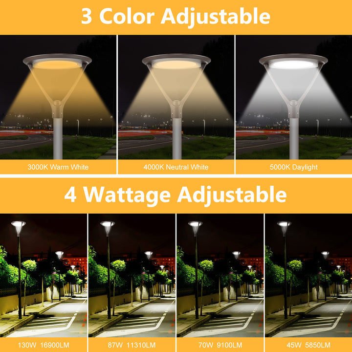 LED Post Top Light 130W, 17,200LM, Selectable Wattage & CCT Series